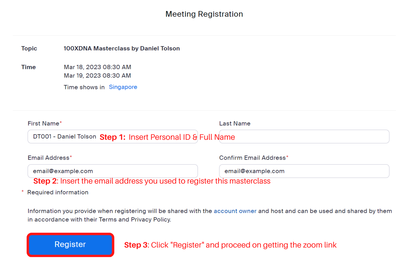 Attendance will be taken after you join the Zoom link. We encourage you to join Zoom as early as you can & Insert your Personal ID in front of your name for our team to verify you to approve you into the Zoom meeting